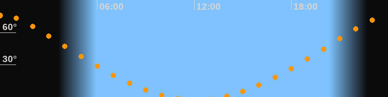 | Aufgang | 13:34 Uhr im Norden (αAz = 17,5°) |