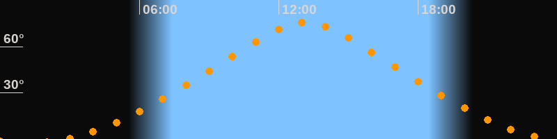 | Höchster Stand (Kulmination) | 13:08 Uhr (h = 75,9°) |