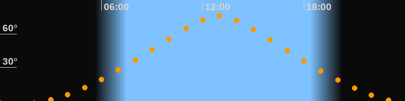 | Höchster Stand (Kulmination) | 12:57 Uhr (h = 75,9°) |