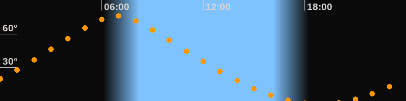 | Höchster Stand (Kulmination) | 06:54 Uhr (h = 75,9°) |