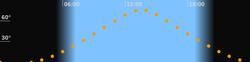 | Höchster Stand (Kulmination) | 13:30 Uhr (h = 75,9°) |
