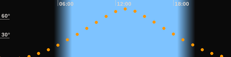 | Höchster Stand (Kulmination) | 13:00 Uhr (h = 75,9°) |