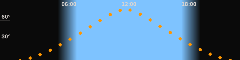 | Höchster Stand (Kulmination) | 12:32 Uhr (h = 75,9°) |