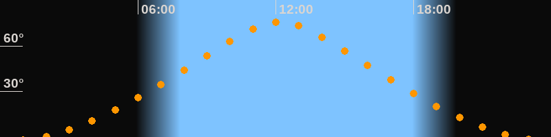 | Höchster Stand (Kulmination) | 12:09 Uhr (h = 75,9°) |