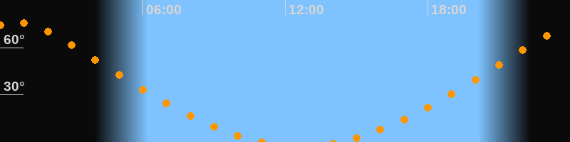 | Aufgang | 14:06 Uhr im Norden (αAz = 17,5°) |