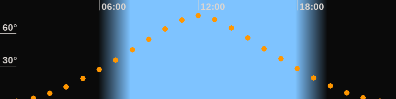 | Höchster Stand (Kulmination) | 12:03 Uhr (h = 75,9°) |