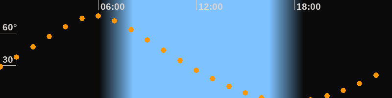 | Höchster Stand (Kulmination) | 05:49 Uhr (h = 75,9°) |