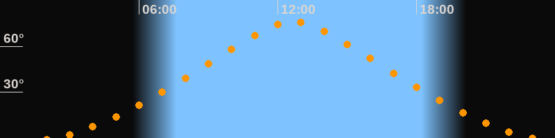 | Höchster Stand (Kulmination) | 12:40 Uhr (h = 75,9°) |