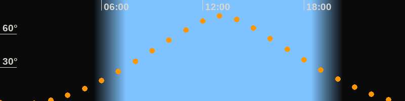 | Höchster Stand (Kulmination) | 13:05 Uhr (h = 75,9°) |