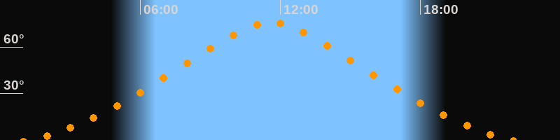 | Höchster Stand (Kulmination) | 11:36 Uhr (h = 75,9°) |
