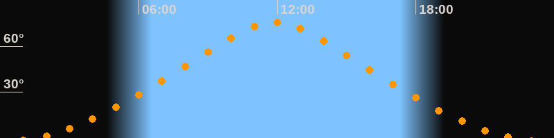 | Höchster Stand (Kulmination) | 11:53 Uhr (h = 75,9°) |
