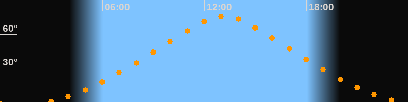 | Höchster Stand (Kulmination) | 13:09 Uhr (h = 75,9°) |