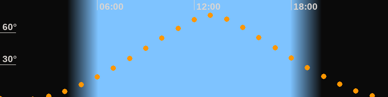 | Höchster Stand (Kulmination) | 13:01 Uhr (h = 75,9°) |