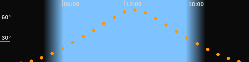 | Höchster Stand (Kulmination) | 12:53 Uhr (h = 75,9°) |