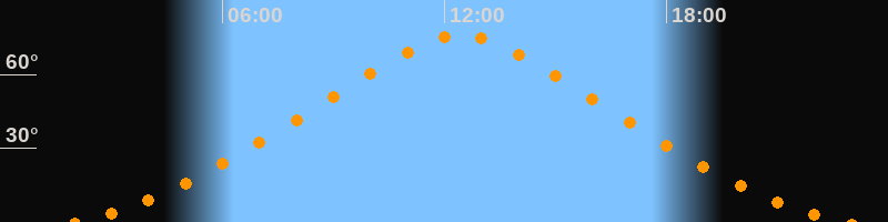 | Höchster Stand (Kulmination) | 12:26 Uhr (h = 75,9°) |