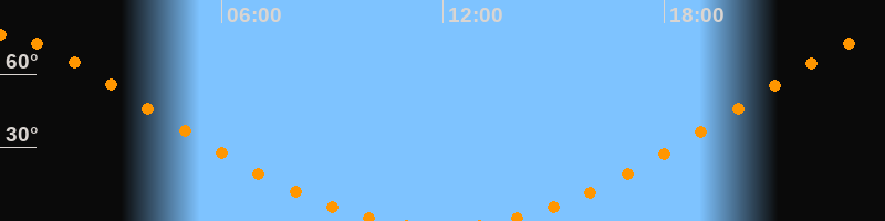 | Aufgang | 13:28 Uhr im Norden (αAz = 17,5°) |
