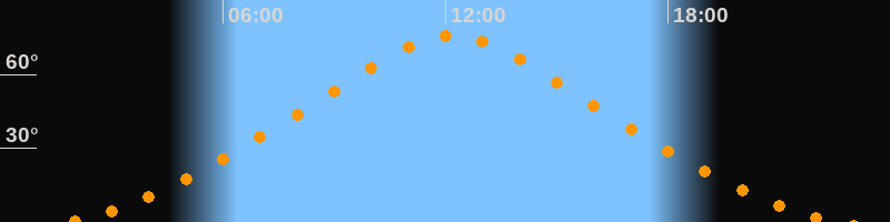 | Höchster Stand (Kulmination) | 12:11 Uhr (h = 75,9°) |
