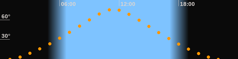 | Höchster Stand (Kulmination) | 11:28 Uhr (h = 75,9°) |