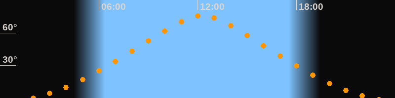 | Höchster Stand (Kulmination) | 12:16 Uhr (h = 75,9°) |