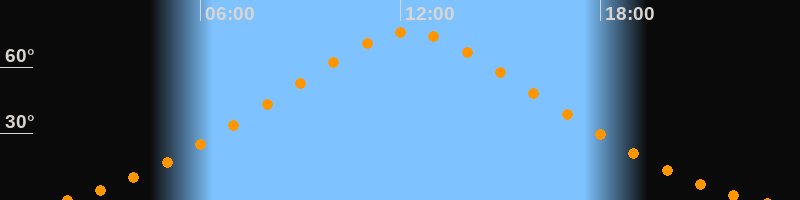 | Höchster Stand (Kulmination) | 12:15 Uhr (h = 75,9°) |