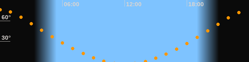 | Aufgang | 13:30 Uhr im Norden (αAz = 17,5°) |