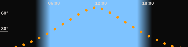 | Höchster Stand (Kulmination) | 12:13 Uhr (h = 75,9°) |