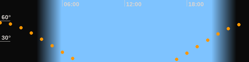 | Aufgang | 16:28 Uhr im Nordosten (αAz = 60,5°) |