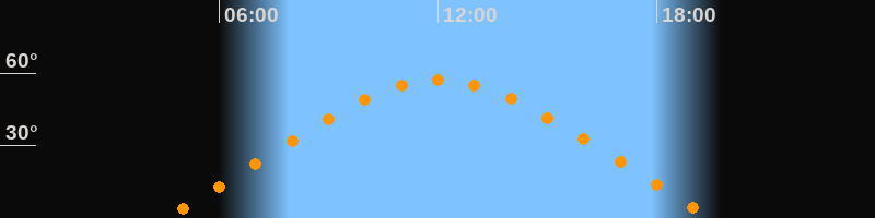 | Höchster Stand (Kulmination) | 12:01 Uhr (h = 57°) |