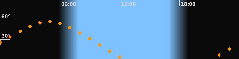 | Aufgang | 21:13 Uhr im Nordosten (αAz = 60,5°) |