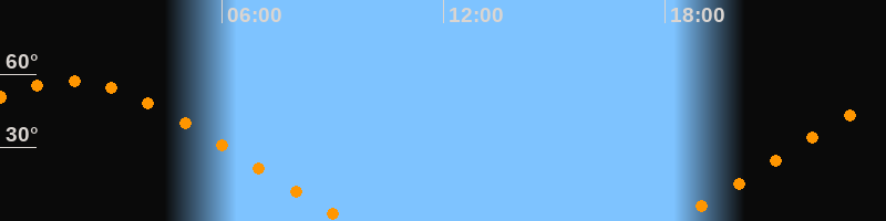 | Aufgang | 18:12 Uhr im Nordosten (αAz = 60,5°) |