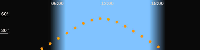 | Höchster Stand (Kulmination) | 12:10 Uhr (h = 57°) |