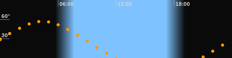 | Aufgang | 20:43 Uhr im Nordosten (αAz = 60,5°) |