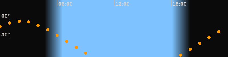 | Aufgang | 18:33 Uhr im Nordosten (αAz = 60,5°) |