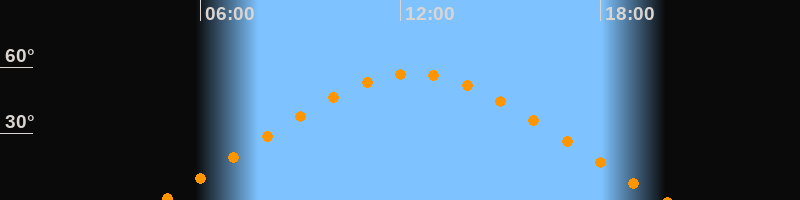 Höchster Stand (Kulmination)12:23 Uhr (h = 57°)