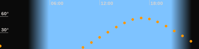| Höchster Stand (Kulmination) | 17:07 Uhr (h = 57°) |