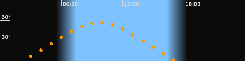 | Höchster Stand (Kulmination) | 09:42 Uhr (h = 57°) |