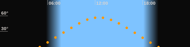 | Höchster Stand (Kulmination) | 12:29 Uhr (h = 57°) |