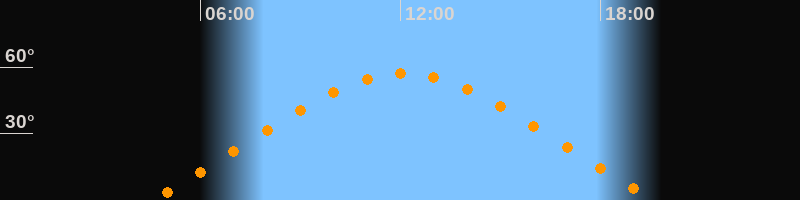 | Höchster Stand (Kulmination) | 12:05 Uhr (h = 57°) |