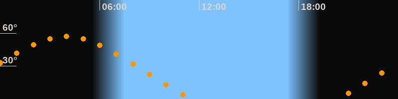 | Untergang | 11:32 Uhr im Nordwesten (αAz = 299,5°) |