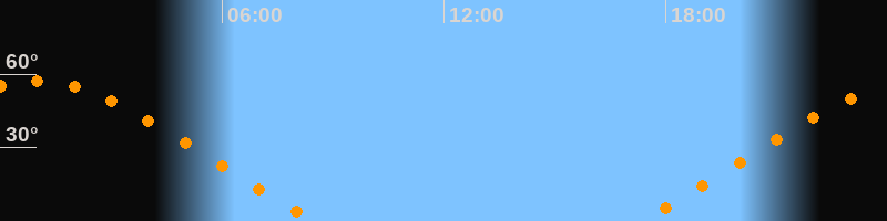 Höchster Stand (Kulmination)00:54 Uhr (h = 57°)