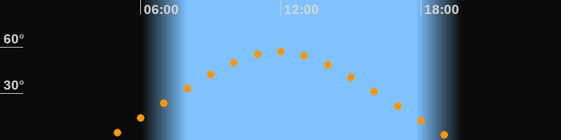 | Höchster Stand (Kulmination) | 11:54 Uhr (h = 57°) |
