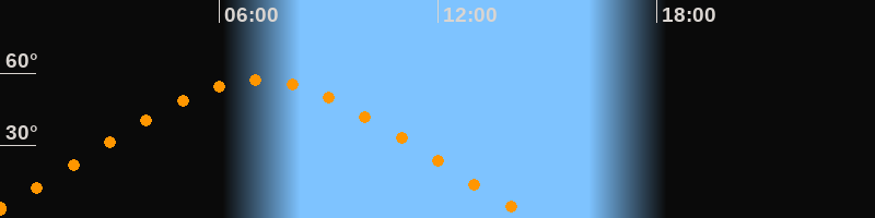 | Höchster Stand (Kulmination) | 07:04 Uhr (h = 57°) |