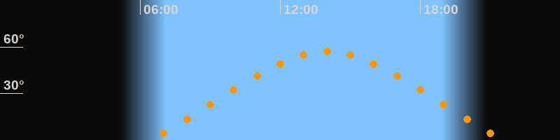 | Höchster Stand (Kulmination) | 14:00 Uhr (h = 57°) |