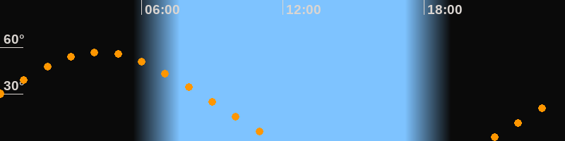 | Untergang | 11:49 Uhr im Nordwesten (αAz = 299,5°) |
