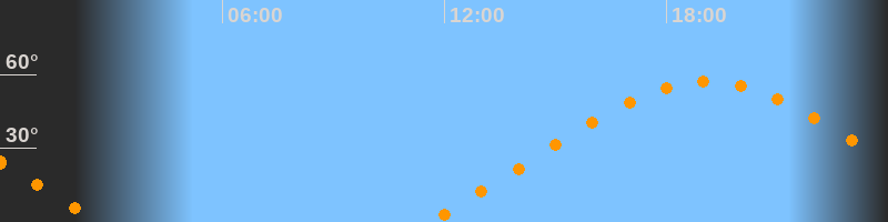 | Aufgang | 11:32 Uhr im Nordosten (αAz = 60,5°) |