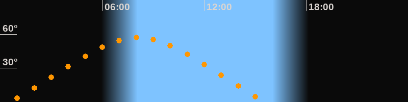 | Höchster Stand (Kulmination) | 08:05 Uhr (h = 57°) |