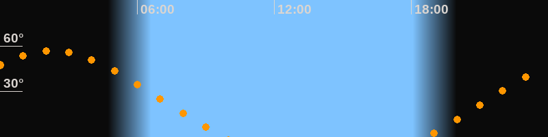 | Aufgang | 18:36 Uhr im Nordosten (αAz = 60,5°) |