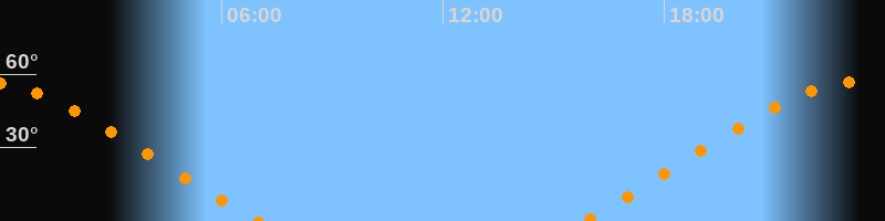 | Untergang | 07:02 Uhr im Nordwesten (αAz = 299,5°) |