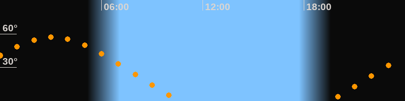 | Aufgang | 19:27 Uhr im Nordosten (αAz = 60,5°) |