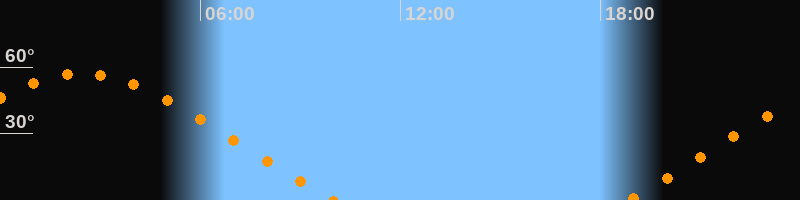 | Aufgang | 18:48 Uhr im Nordosten (αAz = 60,5°) |